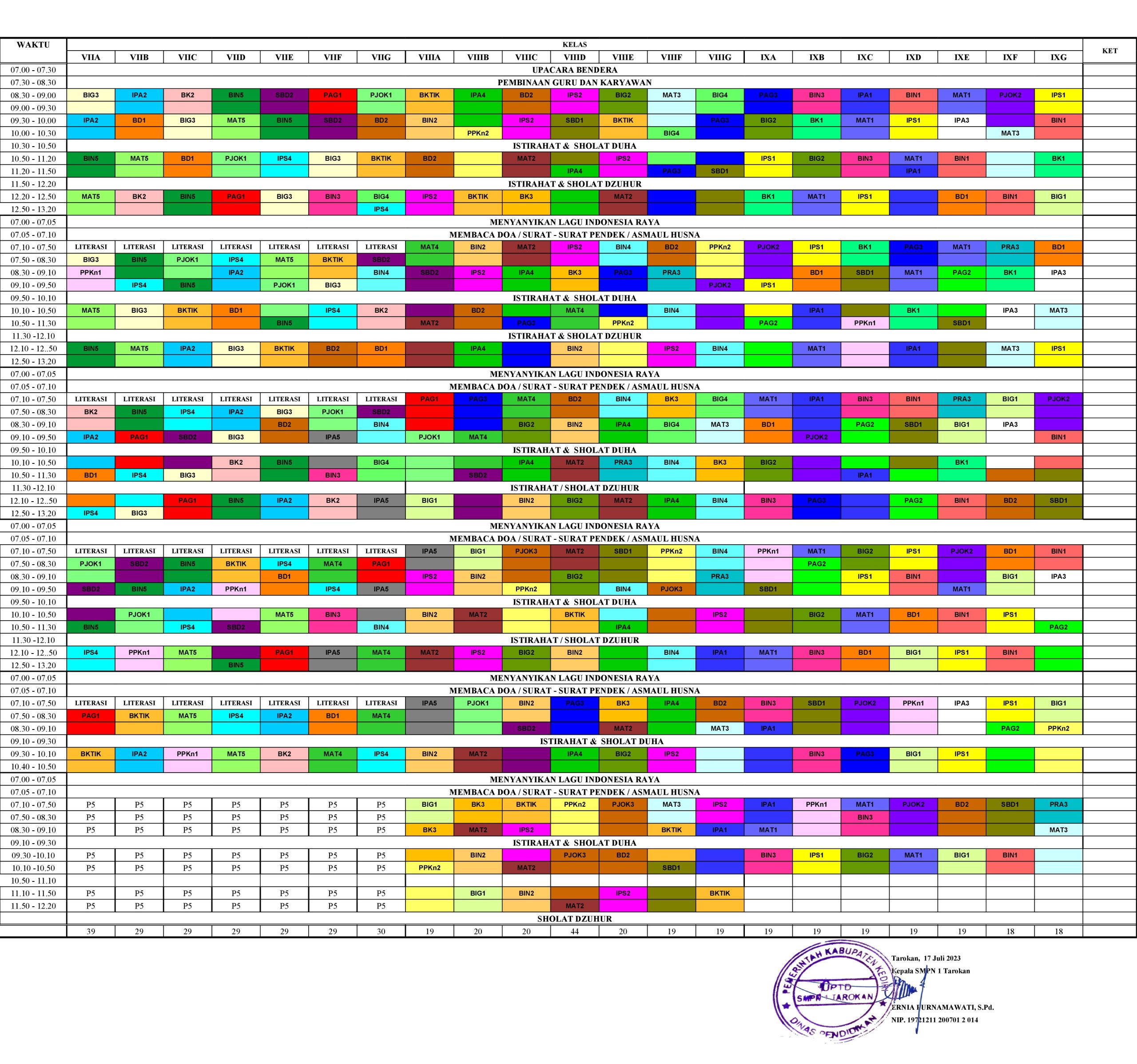 Jadwal PelajaranJadwal Pelajaran SMPN 1 TarokanTahun Pelajaran 2024/2025 Download Jadwal Tahun Pelajaran 2023/2024 Download Jadwal